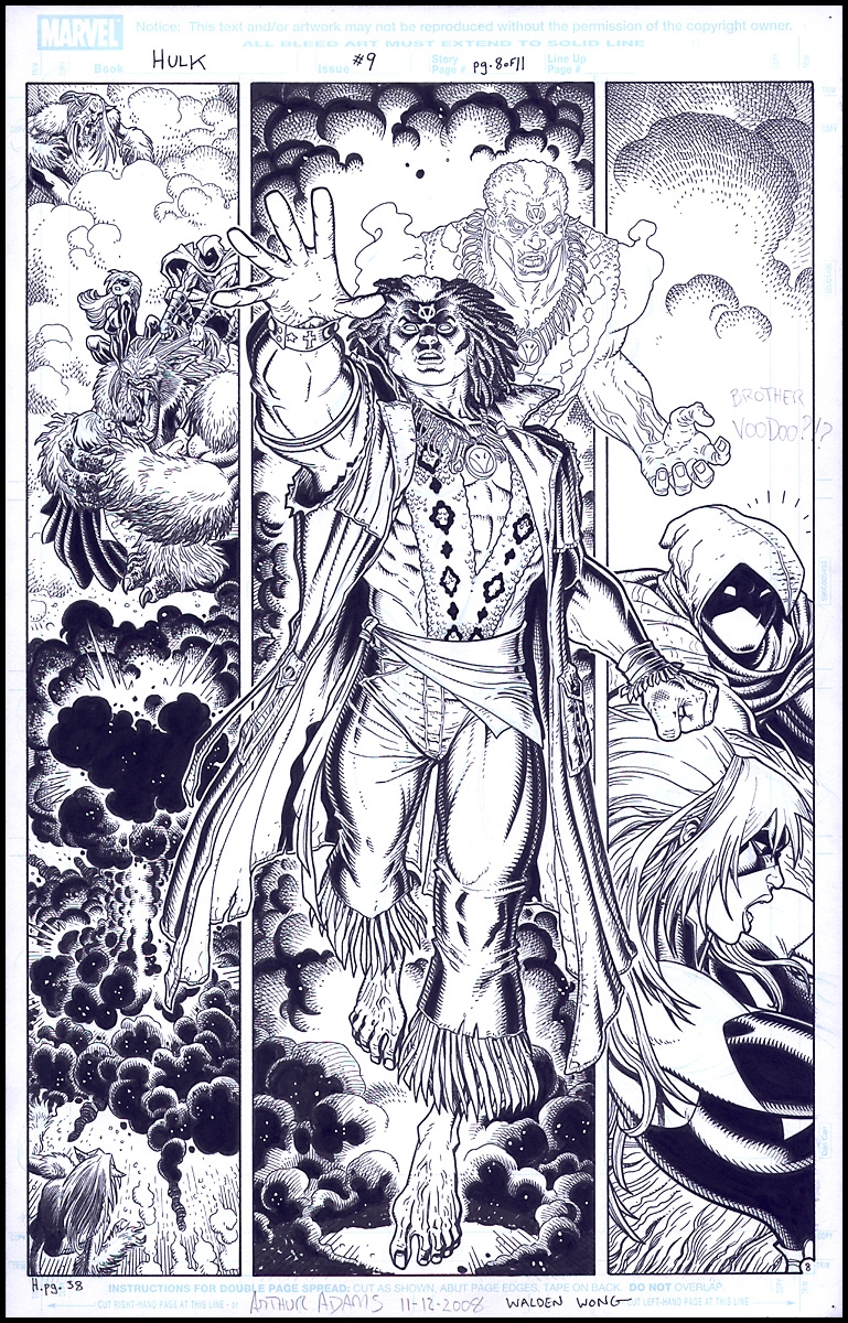 The time I’ve ink an issue of The Hulk over Arthur Adams pencils. Here we have Brother Voodoo, Moon Knight, Wendigo, and Captain Marvel. Everyone buy the Hulk is here.