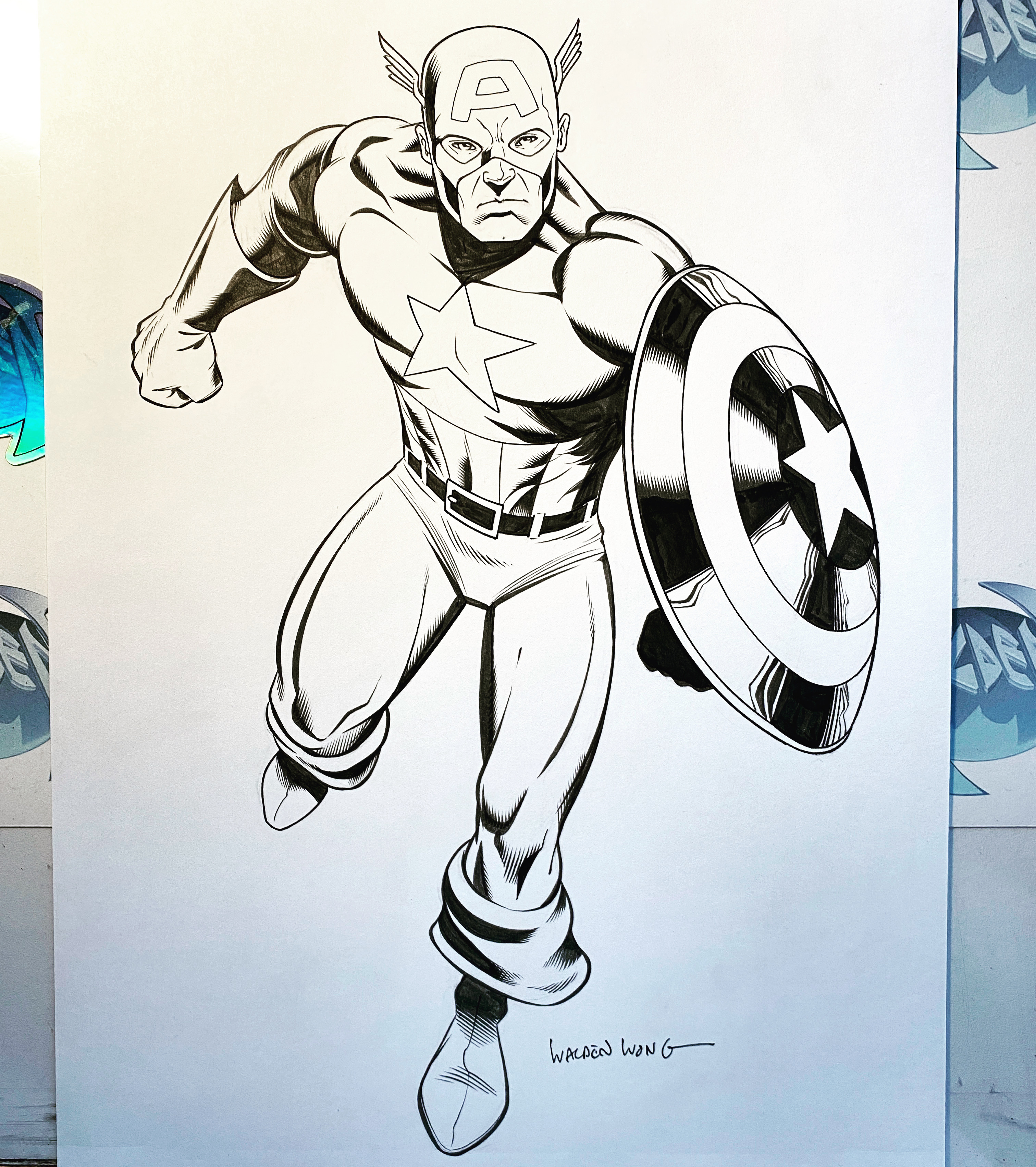 CAPTAIN AMERICA commission. Was asked to give it a classic look to the final art. Pencils and Inks by myself, Walden Wong. This was fun. Sub me on www.youtube.com/WaldenWongArt
