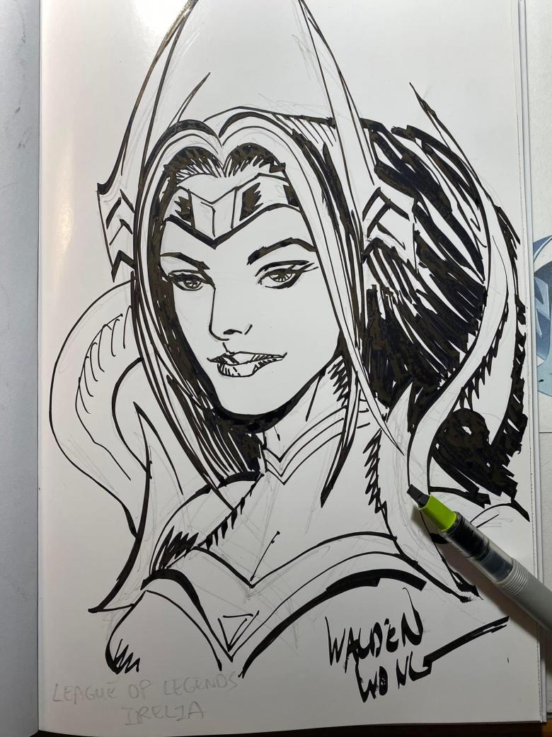 League of Legends Irelia study. Just a pencil study of the character before I draw the read commission. The parallel pen inking practice is just for the fun of it.