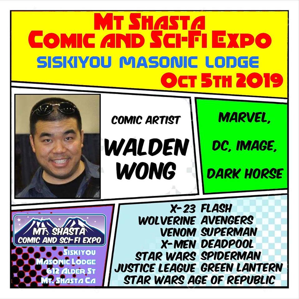 Walden Wong will be a guest at Mt Shasta Comic & Sci-Fi Expo on October 5, 2019, located in Mt Shasta Masonic Center, Mt Shasta, CA. If your in the area that time, come by and say HI!