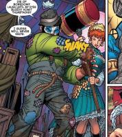 WOLVERINE dressed as a clown from WOLVERINE AND THE X-MEN issue 22. Pencils by Nick Bradshaw, inks by Walden Wong, colors by Laura Martin